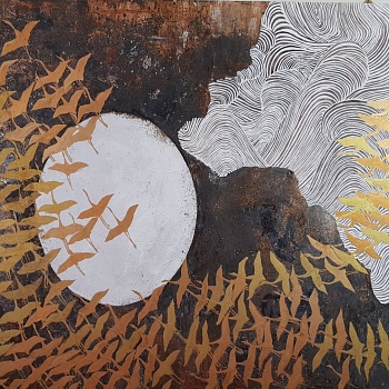 Esprimo la mia creatività attraverso la pittura realizzando quadri con una particolare tecnica che unisce olio su tavola e acquarello giapponese.